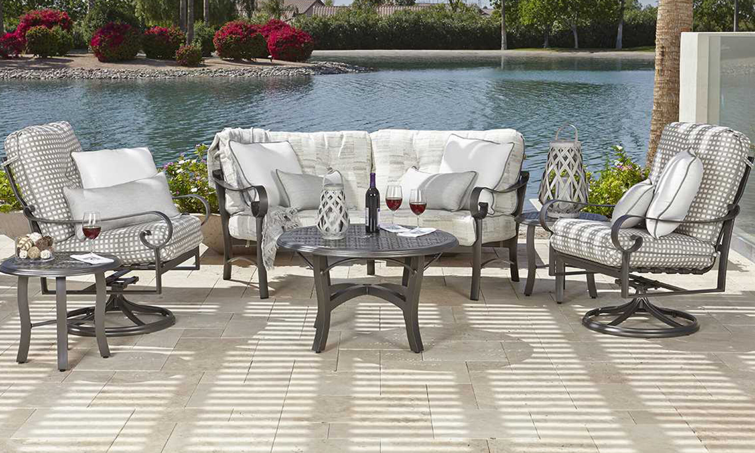 A perennial customer favorite, Belden combines classic charm with modern durability. Elegant, scrolled arms are made wide enough for comfort. Tall sofa and chair backs display a distinctive motif reminiscent of a classical lyre-back chair. Plush all-weather cushions feature welted trim, rounded edges, and a single center button tuft. The strong extruded-aluminum frame comes in several finishes. Belden Cushion includes lounge seating, dining chairs, and barstools. For effortless coordination, mix these cushioned pieces with Belden Sling and Padded Sling styles.